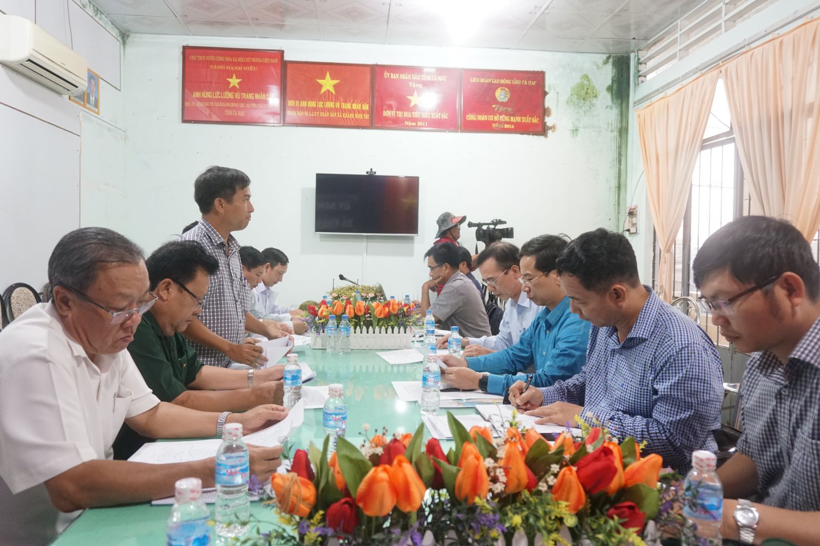 Sau khi kiểm tra, Đoàn công tác đã họp cùng với Đại diện Ban Chỉ huy PCTT&TKCN tỉnh Cà Mau và các ngành có liên quan để nghe địa phương báo cáo về công tác chỉ đạo, điều hành ứng phó và khắc phục hậu quả thiên tai cũng như các đề xuất, kiến nghị của địa phương và các ý kiến nhận xét, đánh giá cũng như đề xuất giải pháp trước mắt và lâu dài của Viện Khoa học Thủy lợi miền Nam, của Vụ Kiểm soát an toàn thiên tai.