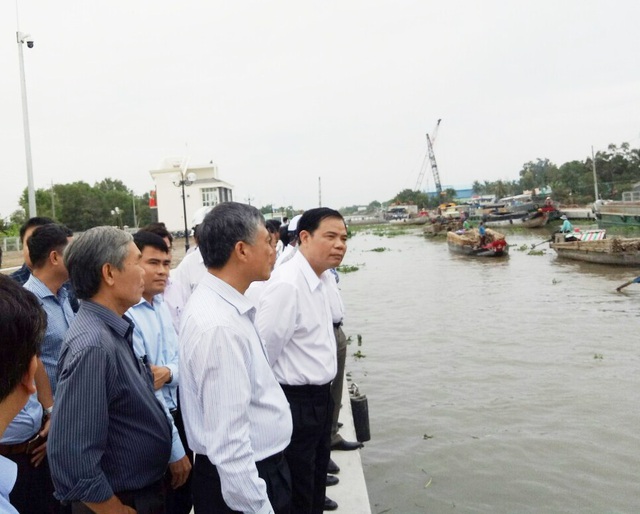 Chủ tịch tỉnh Bạc Liêu Dương Thành Trung thông tin về tình hình hạn, mặn, xây dựng cống Âu thuyền Ninh Quới đến Bộ trưởng NN&PTNT Nguyễn Xuân Cường cùng đoàn công tác. |