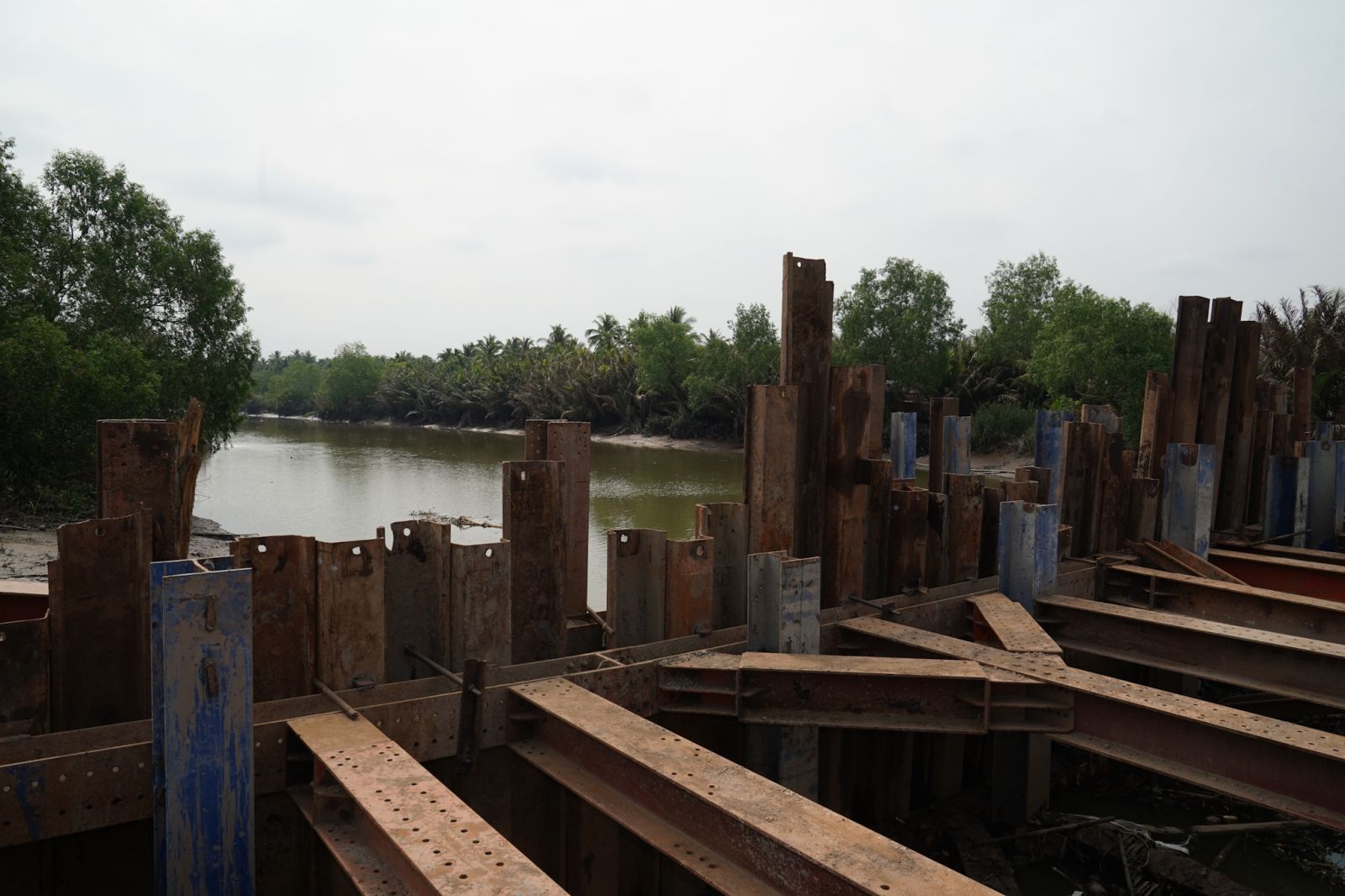 Đập tạm chống ngập mặn tại Ba Lai, Châu Thành, Bến Tre. Ảnh: VGP/Quang Hiếu |