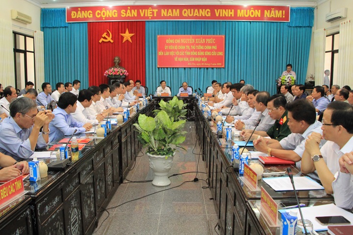 Tại Hội nghị, Thủ tướng đề nghị các đại biểu tập trung thảo luận các biện pháp trước mắt và căn cơ, lâu dài để phòng chống hạn, mặn. Trước hết là thảo luận các biện pháp giải quyết vấn đề thiếu nước sinh hoạt cho người dân, “đây là yêu cầu cấp bách, không thể chậm hơn”. Thứ hai là hạn chế thấp nhất thiệt hại về kinh tế - xã hội ở khu vực, đặc biệt là tại 5 tỉnh đã phải công bố tình huống khấn cấp về xâm nhập mặn (Bến Tre, Tiền Giang, Long An, Cà Mau, Kiên Giang).