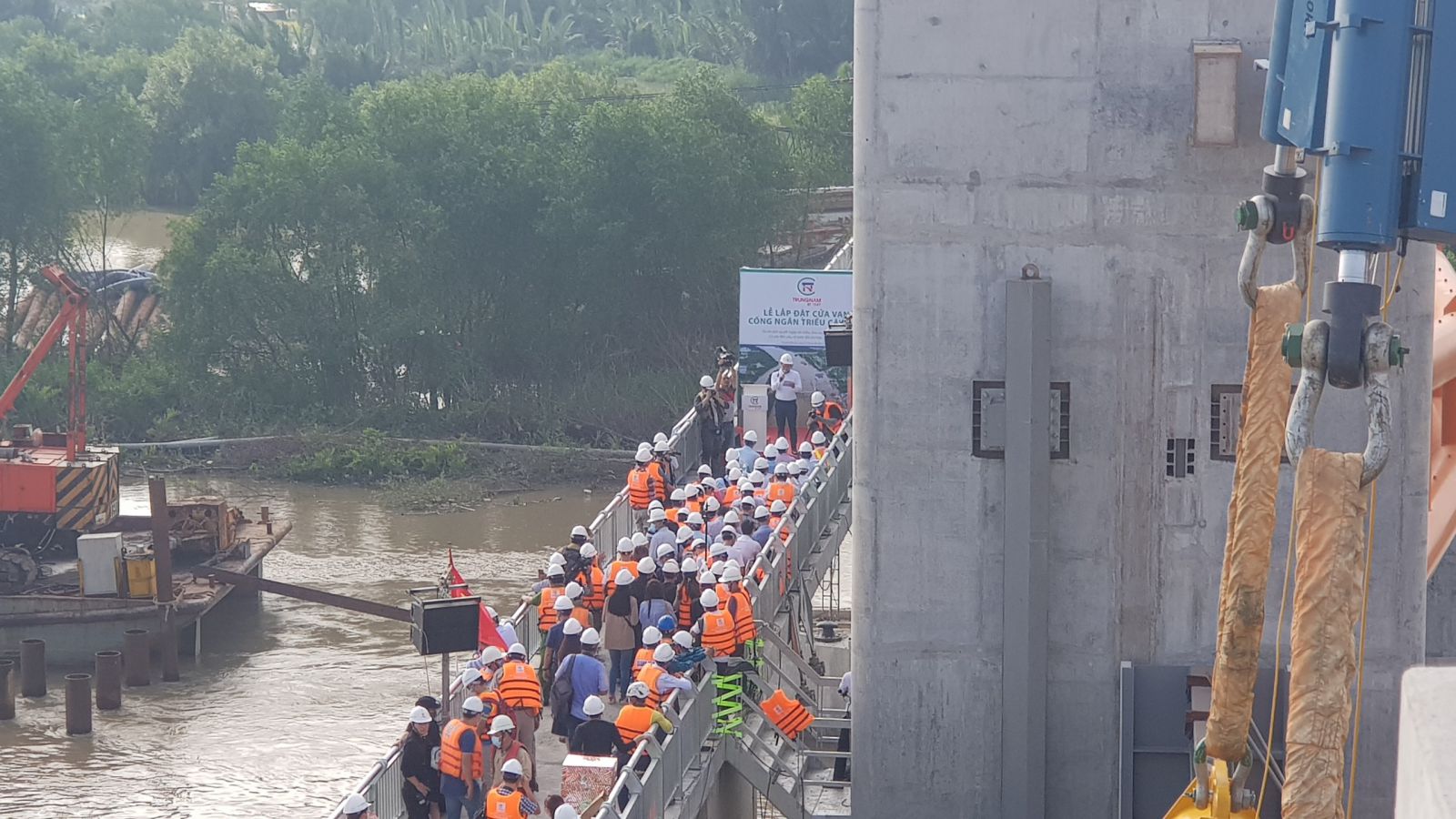 Ngày 22 tháng 8 năm 2020, vào lúc 7g30 - Công ty TNHH Trung Nam BT 1547 long trọng tổ chức buổi lễ lắp đặt cửa van cống kiểm soát triều Cây Khô.