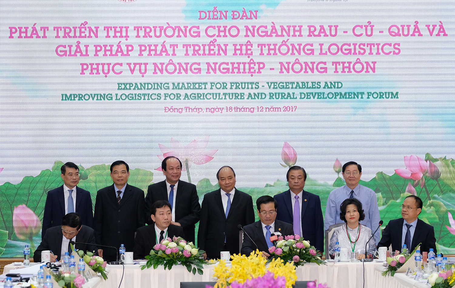 Ngày 18/12/2017, tại tỉnh Đồng Tháp, Thủ tướng Nguyễn Xuân Phúc dự Diễn đàn Phát triển thị trường cho ngành rau-củ-quả và giải pháp phát triển hệ thống Logistics phục vụ nông nghiệp-nông thôn. Phát biểu tại Diễn đàn, Thủ tướng cho rằng, ngành rau quả Việt Nam có tiềm năng rất lớn và vừa qua đã có tốc độ tăng trưởng mạnh nhưng bên cạnh đó cần phải cải thiện nhanh chóng hơn dịch vụ logistics trong chuỗi giá trị ngành hàng rau-củ-quả nói riêng và nông sản nói chung. |