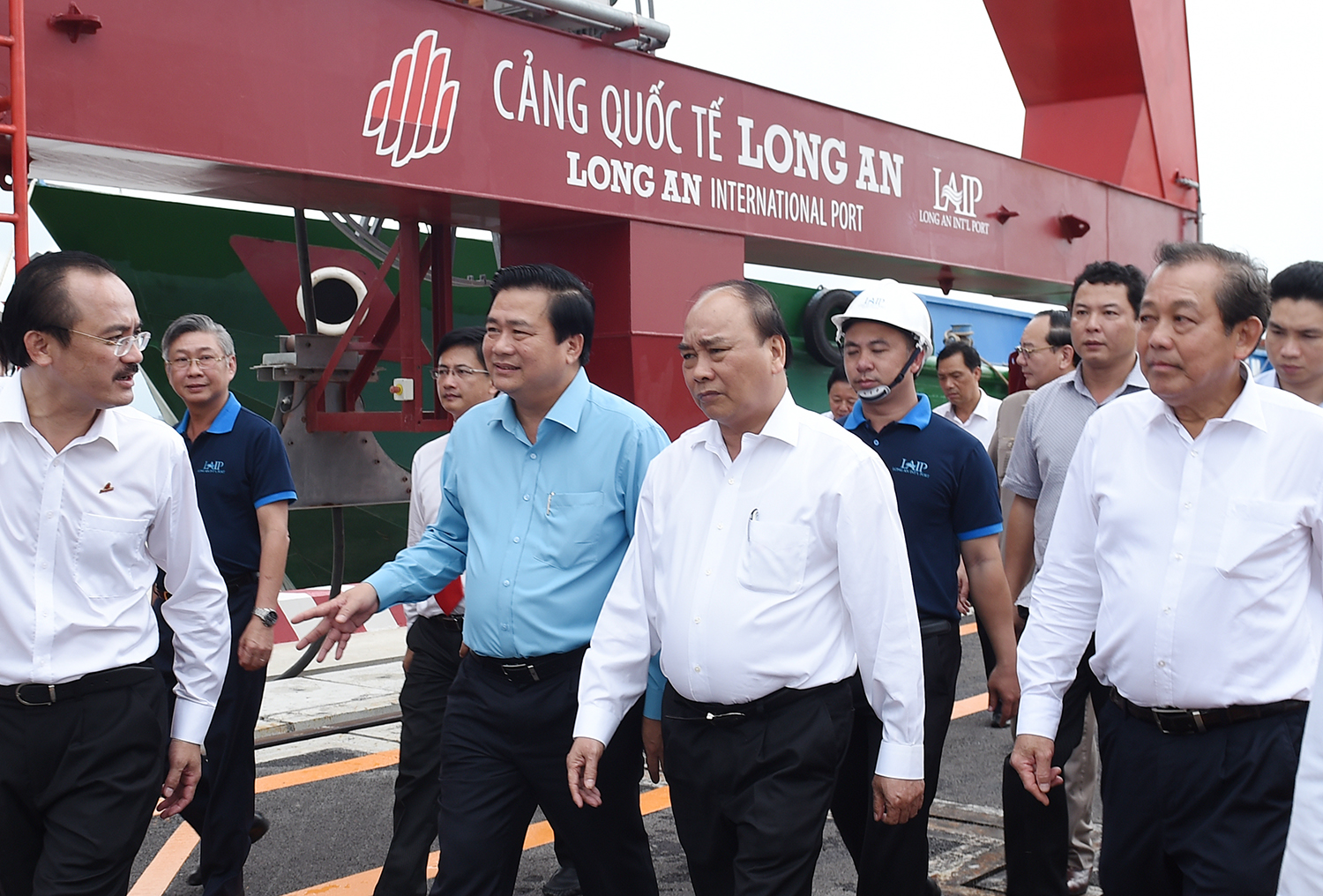 Thủ tướng Chính phủ Nguyễn Xuân Phúc thăm cảng quốc tế Long An ngày 16/10/2016. Cảng quốc tế Long An được kỳ vọng là cầu nối đưa hàng hóa ĐBSCL ra thế giới. |