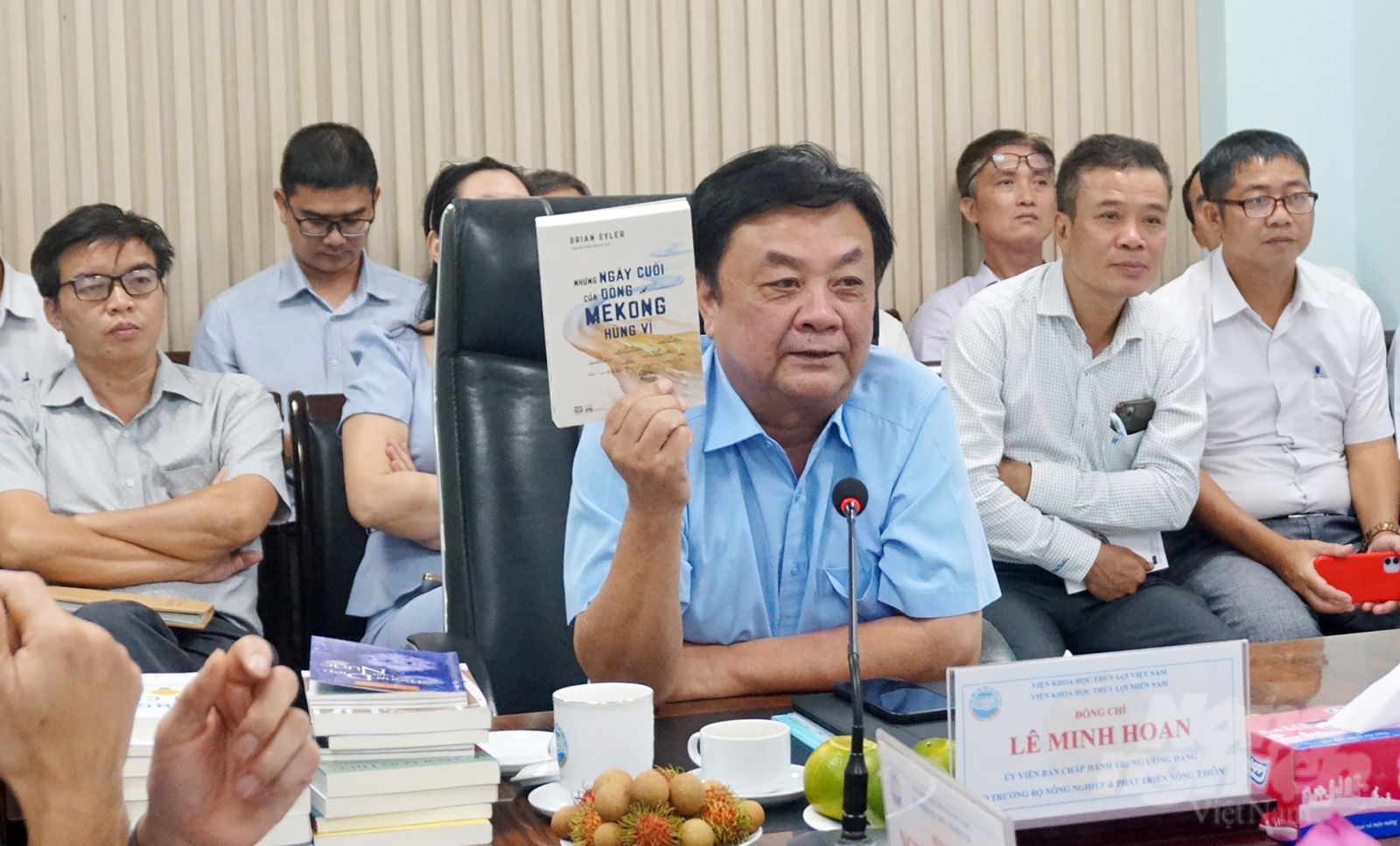 Bộ trưởng Lê Minh Hoan giới thiệu về cuốn sách “Những ngày cuối của dòng Mekong hùng vĩ” với cán bộ, nhà khoa học Viện Khoa học Thủy lợi miền Nam. Ảnh: Nguyễn Thủy. |