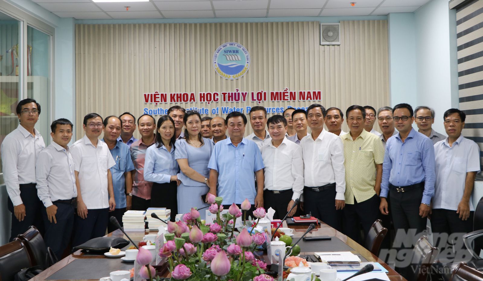Bộ trưởng Lê Minh Hoan cùng đoàn công tác chụp hình lưu niệm cùng cán bộ, nhà khoa học Viện Khoa học Thủy lợi miền Nam. Ảnh: Nguyễn Thủy. |