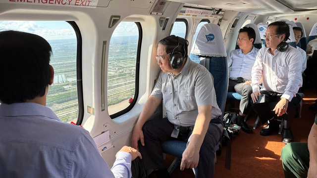 Thủ tướng thị sát vùng sạt lở tại tỉnh Kiên Giang bằng máy bay trực thăng - Ảnh: VGP/Nhật Bắc |