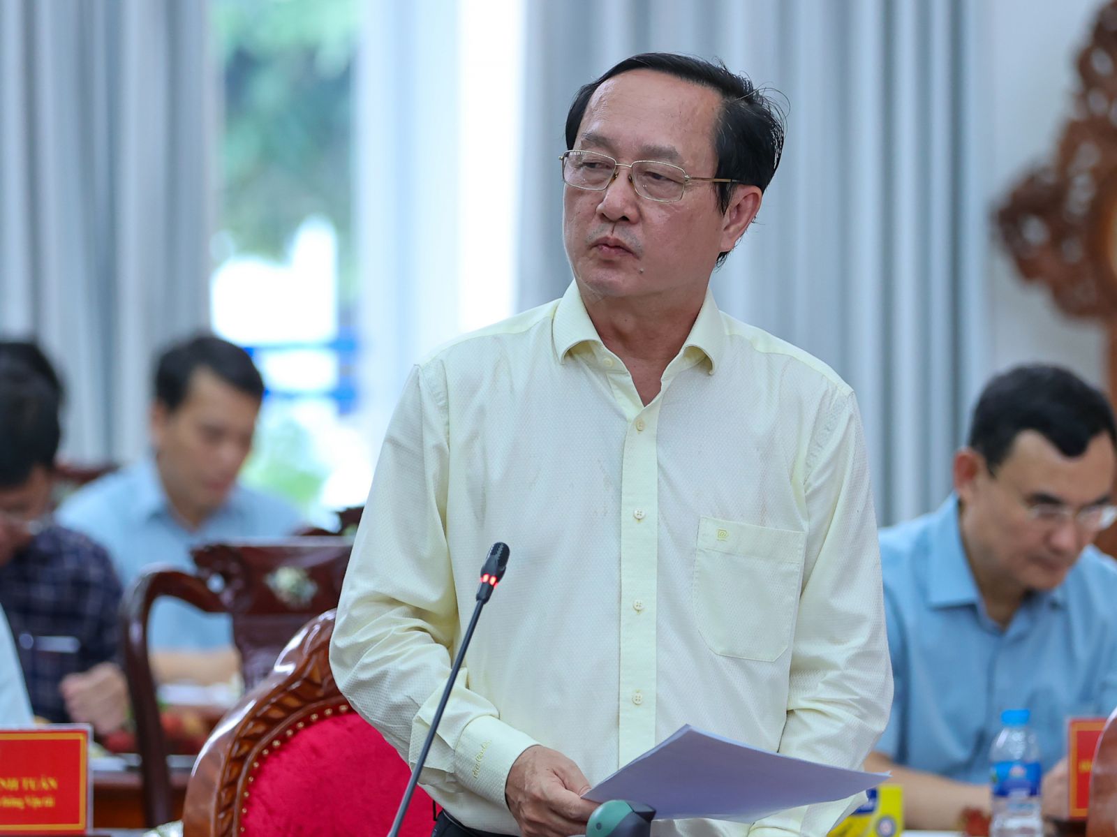 Cùng đi với Thủ tướng có Bộ trưởng Bộ Nông nghiệp và Phát triển nông thôn Lê Minh Hoan, Bộ trưởng Bộ Khoa học và Công nghệ Huỳnh Thành Đạt, Bộ trưởng Bộ Tài nguyên và Môi trường Đặng Quốc Khánh, lãnh đạo các bộ, ngành Trung ương, các đồng chí Bí thư, Chủ tịch UBND các tỉnh, thành phố tại ĐBSCL, một số nhà khoa học.