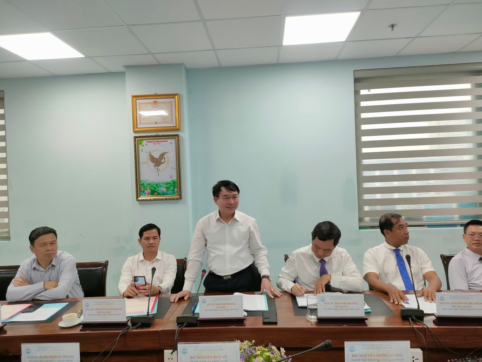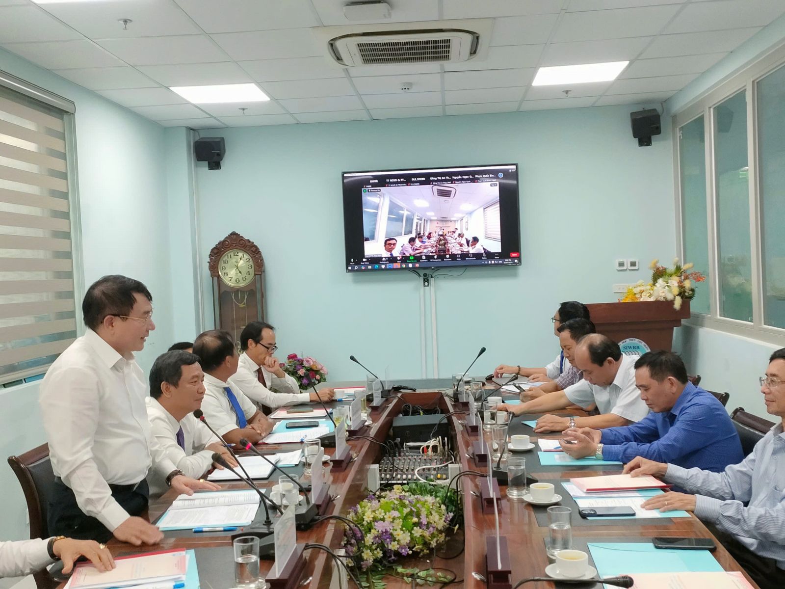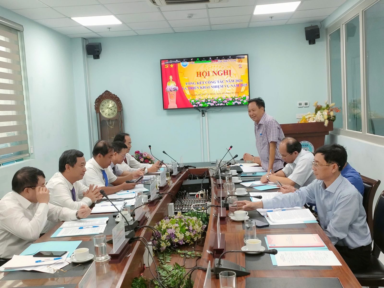 Về phía Viện KHTL miền Nam có PGS.TS. Trần Bá Hoằng – Bí thư Đảng ủy, Viện trưởng; Cùng tham dự hội nghị tại điểm cầu văn phòng Viện có các Đ/c trong Đảng ủy và BGĐ Viện, Trưởng các đơn vị trực thuộc, Chủ tịch Công đoàn và Bí thư Đoàn thanh niên Viện.