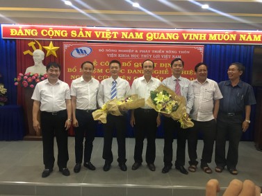 Thực hiện Thông báo số 726/TB-VKHTLVN ngày 18/9/2018, ngày 22/9/2018 tại Hội trường Viện Khoa học Thủy lợi miền Nam, Viện Khoa học Thủy lợi Việt Nam đã tổ chức Lễ công bố Quyết định bổ nhiệm Chức danh nghề nghiệp nghiên cứu viên cao cấp (hạng 1) cho 2 cán bộ khoa học thuộc Viện Khoa học Thủy lợi miền Nam.