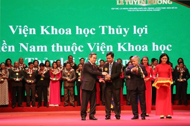 Tiếp theo đó, Bộ Nông nghiệp và Phát triển Nông thôn đã tiến hành tổ chức trao tặng bằng khen cho các hợp tác xã, nông dân, chủ trang trại và các cá nhân, nhóm tác giả. Trong đó, Viện Khoa học Thủy lợi Việt Nam vinh dự có 04 sản phẩm là kết quả nghiên cứu khoa học đạt được giải thưởng “Bông lúa vàng Việt Nam” đó là: