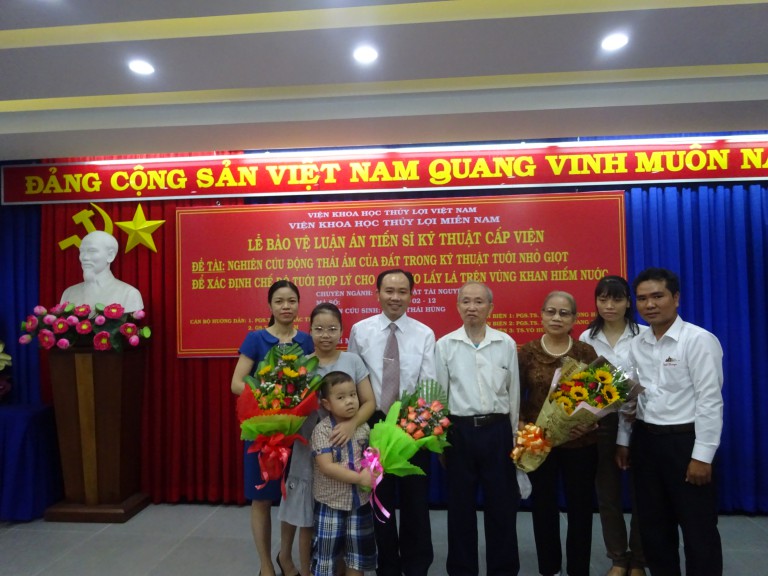 Tham dự Lễ bảo vệ luận án có khoảng 40 đại biểu. Ngoài Hội đồng đánh giá luận án, về phía Viện KHTL Việt Nam, có PGS.TS Phạm Hồng Cường, Phó trưởng ban Tổ chức Hành chính; về phía cơ sở đào tạo Viện Khoa học Thủy lợi miền Nam, có PGS. TS. Nguyễn Nghĩa Hùng, Phó Viện trưởng phụ trách công tác đào tạo; các cán bộ chủ chốt, cán bộ khoa học, các nghiên cứu sinh của Viện; các nhà khoa học lĩnh vực thủy lợi, môi trường như GS.TSKH Nguyễn Ân Niên (Hội KHKT Thủy lợi TP.HCM), GS.TS Lê Mạnh Hùng (Hội KHKT Thủy lợi TP.HCM), PGS.TS Phạm Quang Khánh (Phân Viện QHTK Nông nghiệp miền Nam), PGS.TS Hoàng Văn Huân (Viện KT Biển), GS.TS Trần Thị Thanh, TS Trịnh Thị Long...; bạn bè, gia đình và đồng nghiệp của nghiên cứu sinh.