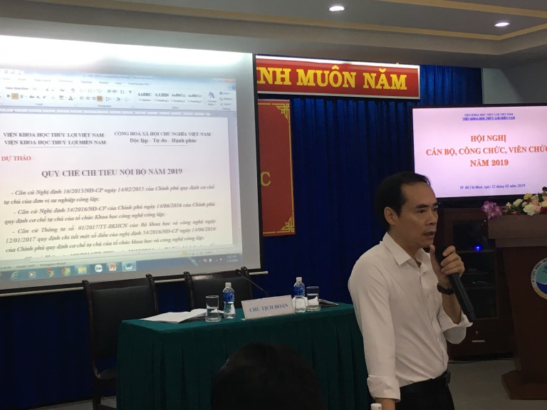 Thực hiện Quy chế dân chủ trong hoạt động của cơ quan hành chính Nhà nước và đơn vị sự nghiệp công lập ban hành theo Nghị định 04/2015/NĐ-CP ngày 09/01/2015 của Chính phủ và Thông tư số 01/2016/TT-BNV ngày 13/01/2016 của Bộ Nội vụ hướng dẫn một số nội dung của Nghị định 04/2015/NĐ-CP; các văn bản hướng dẫn của Bộ Nông nghiệp và Phát triên nông thôn và của Viện Khoa học Thủy lợi Việt Nam về việc hướng dẫn tổ chức Hội nghị cán bộ, công chức, viên chức năm 2019.