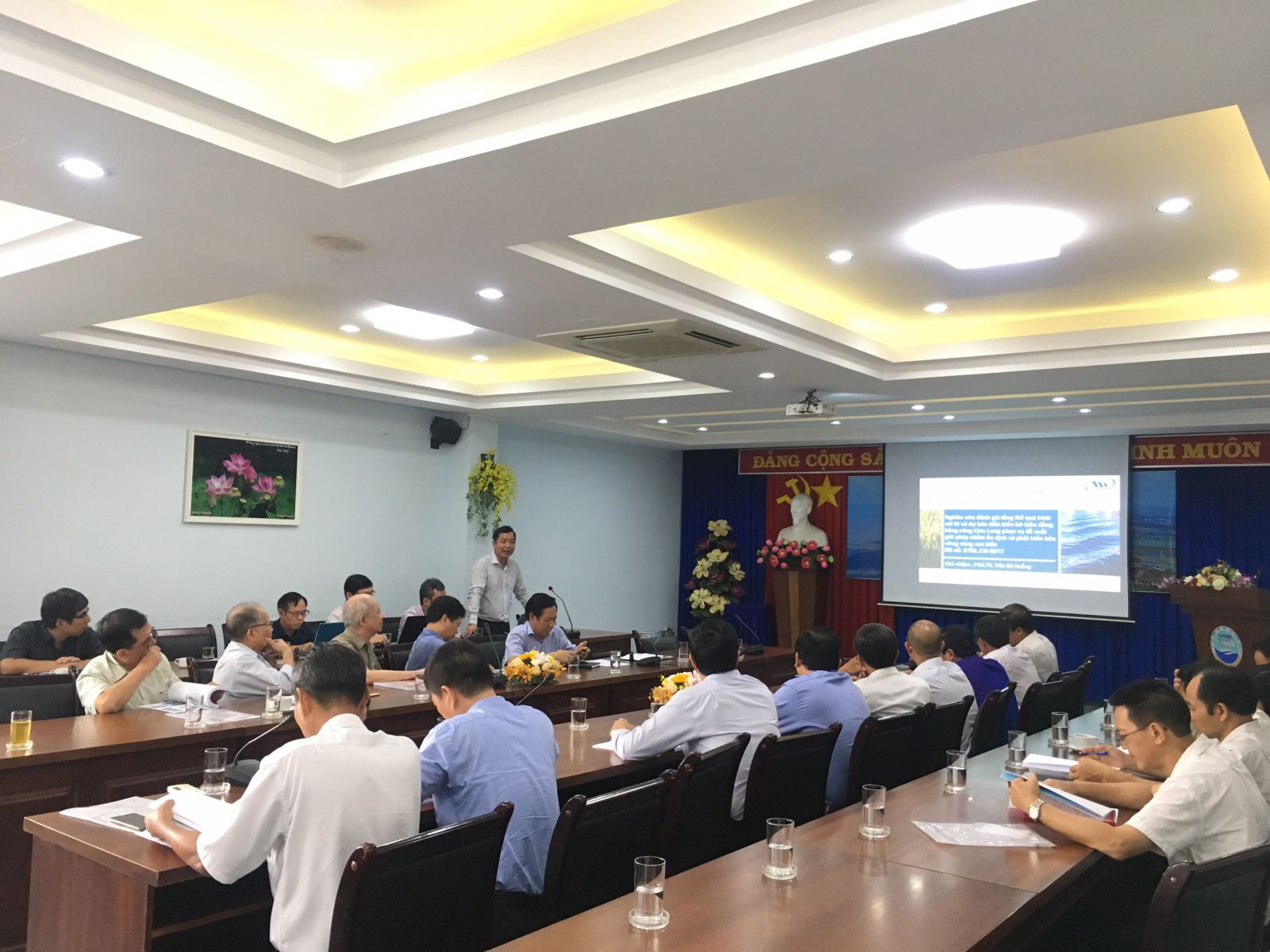Về phía Bộ Khoa học và Công nghệ có Ông Nguyễn Hải Nam- đại diện; PGS.TS. Tô Văn Thanh, Phó Giám đốc Viện Khoa học Thủy lợi Việt Nam. Đại diện lãnh đạo các cơ quan thuộc Bộ như: Cục Quản lý Xây dựng Công trình Phía Nam (B2), Chi cục Phòng chống Thiên tai phía Nam, Viện Kỹ thuật Biển. Về phía Viện Khoa học Thủy Lợi miền Nam, cơ quan tổ chức hội thảo có sự tham gia của GS. TSKH Nguyễn Ân Niên, GS.TS. Nguyễn Tất Đắc, GS.TS Lê Mạnh Hùng, GS.TS Tăng Đức Thắng, PGS.TS Huỳnh Thanh Sơn, Phó Viện Trưởng Nguyễn Nghĩa Hùng, và đông đảo các chuyên gia, nhà khoa học thuộc Viện.