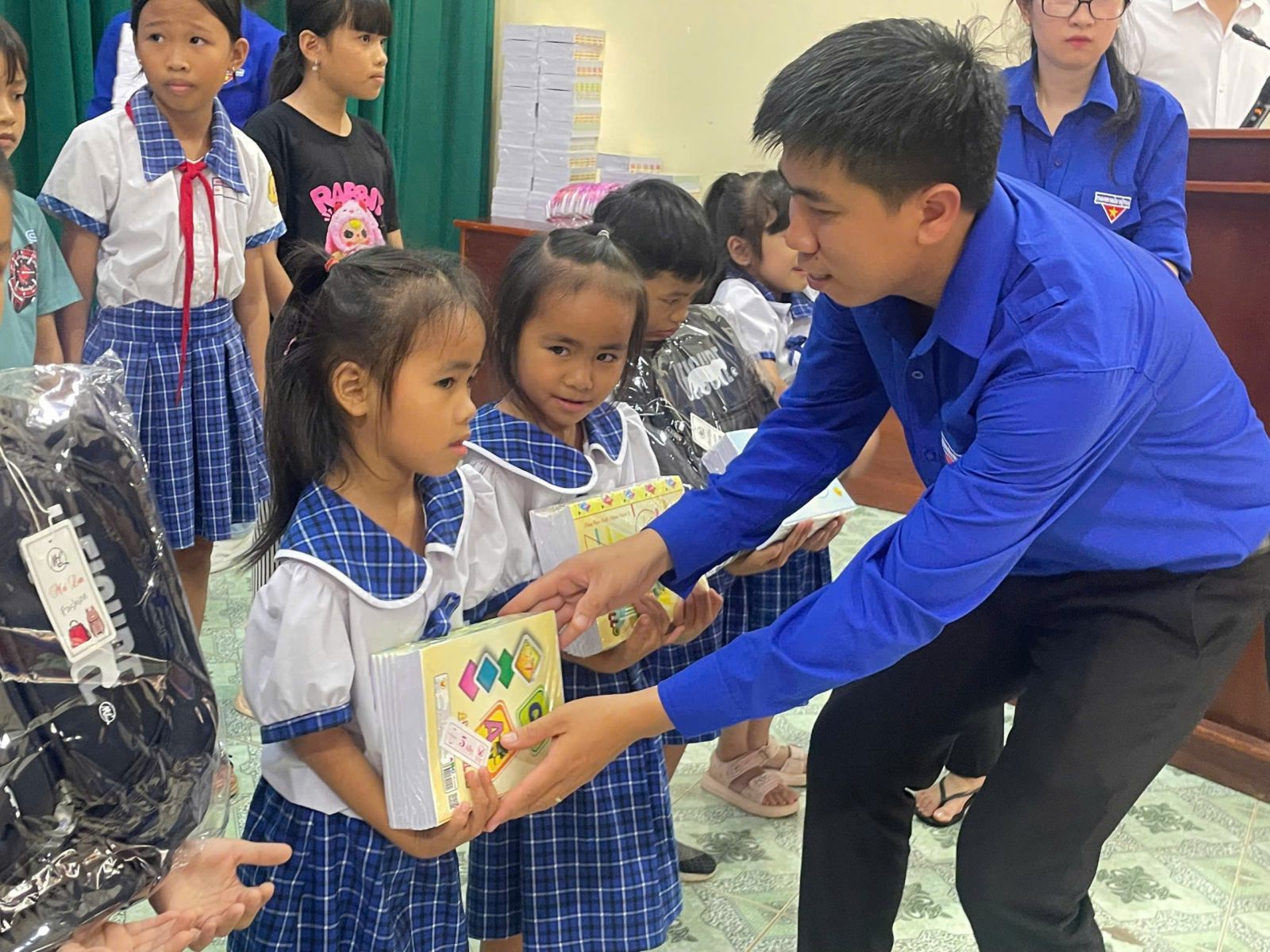 + 158 phần quà khuyến khích học tập đến các em học sinh Tiểu học, gồm: Balo, Tập, Nón.