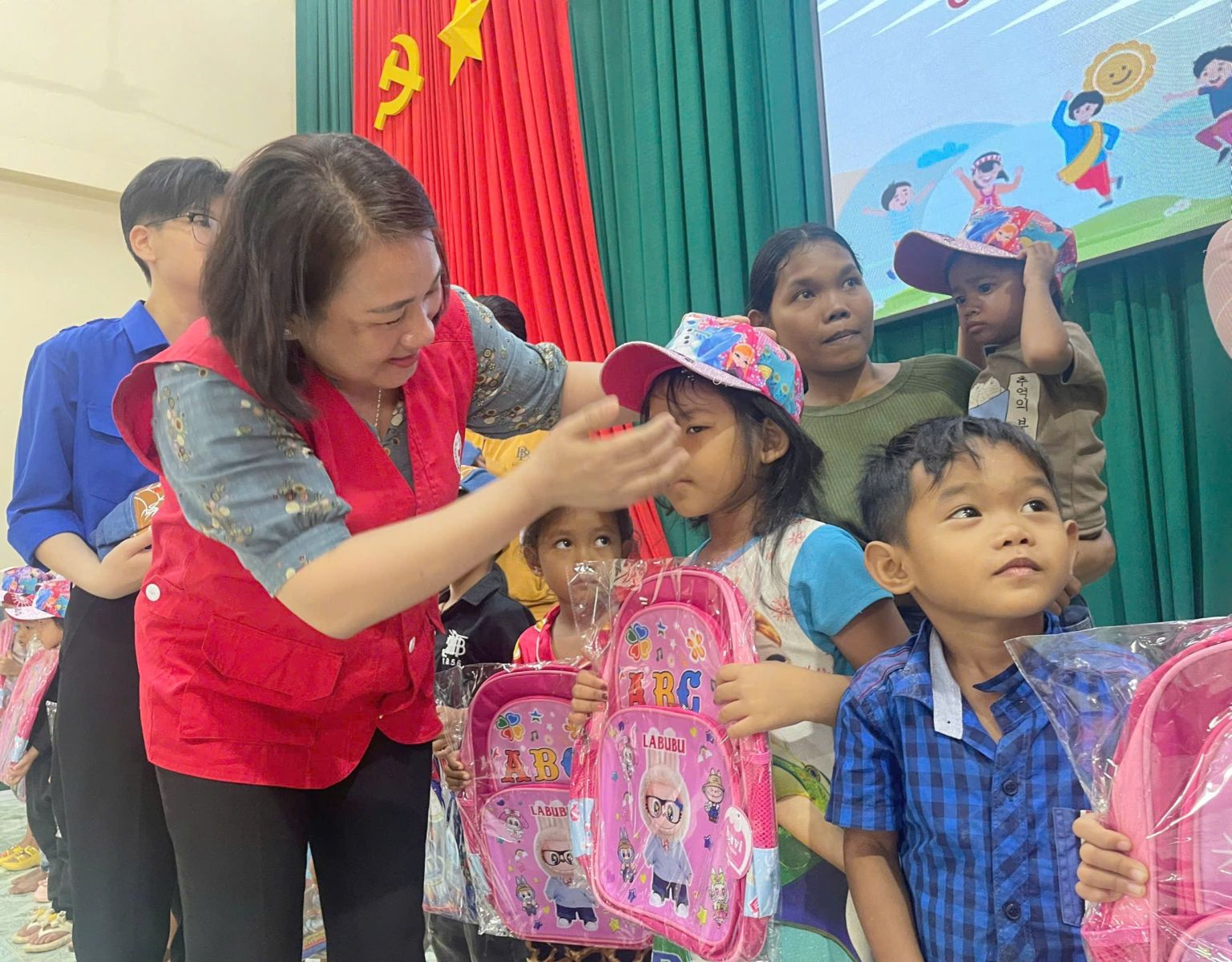 + 80 phần quà đến các em học sinh mầm non, gồm Balo, Nón.