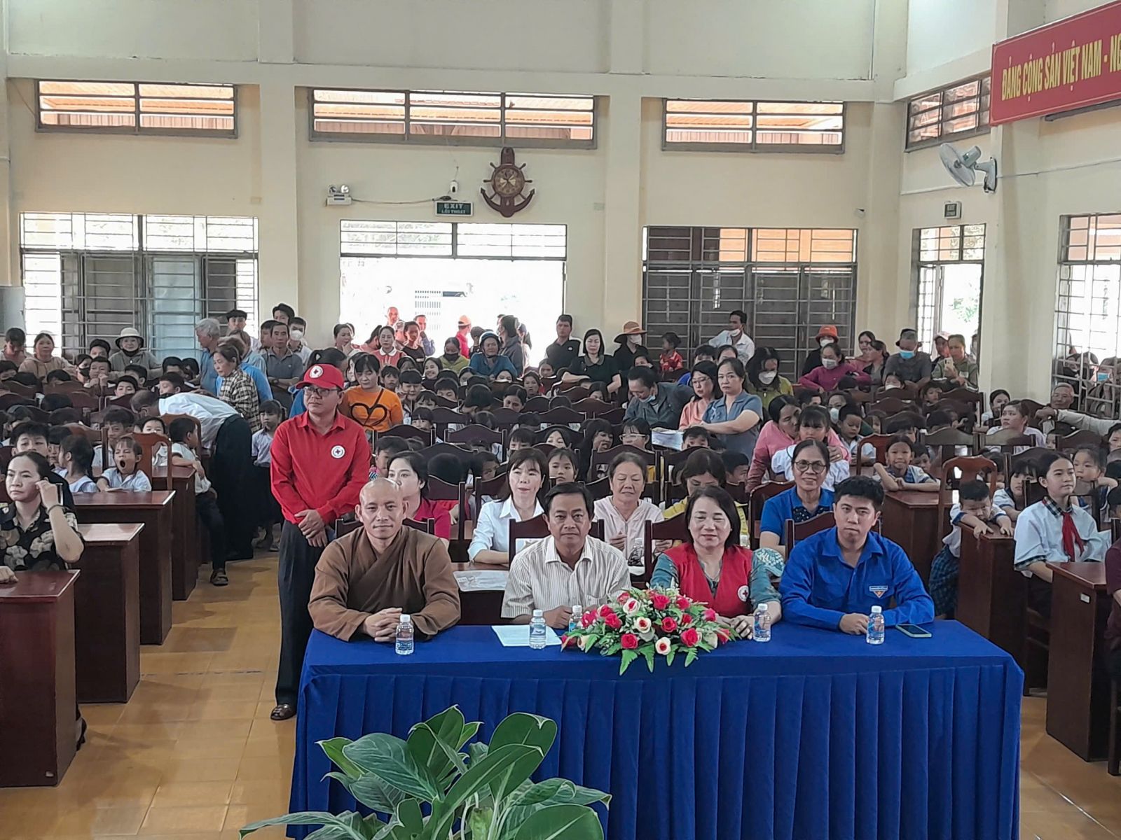 + Tặng 42 suất học bổng đến các em học sinh Trung học cơ sở, gồm: 500 ngàn tiền mặt, Balo, Tập, Nón.